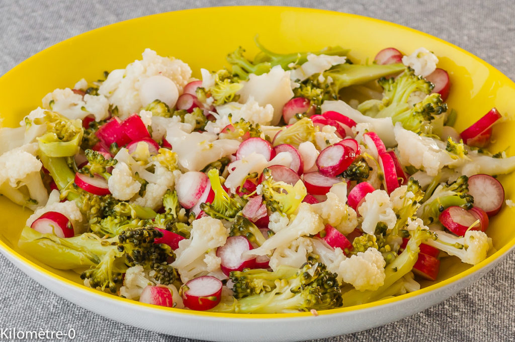 Préparez la vinaigrette dans un saladier. Mettez-y les légumes coupés finement.