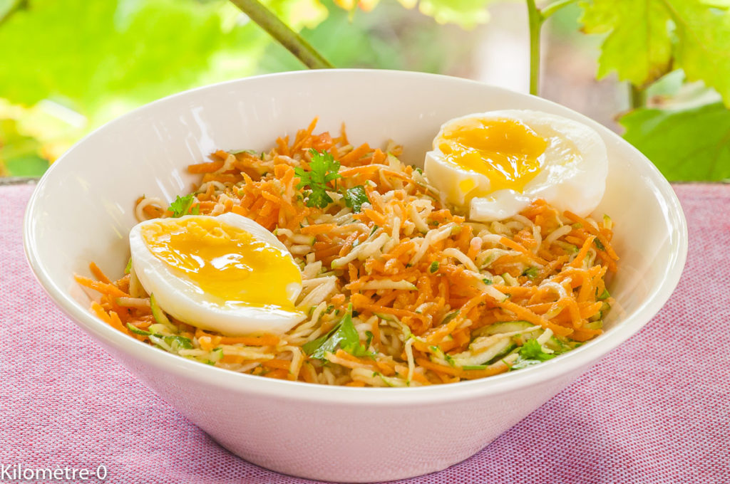 Pour profitez au maximum des vitamines et des éléments nutritifs des légumes, mangez-les crus de temps en temps. Les intestins fragiles les supportent un peu moins bien donc variez les manières de les cuisiner. Cette salade est facile à faire quand on est en vacances. Il suffit d’avoir emporté la râpe !