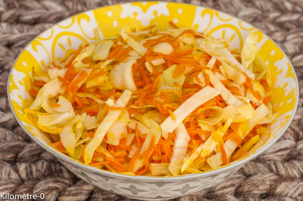 Très souvent, on prépare le chou blanc en le cuisant. Pourtant, il est très bon cru et fait de très bonnes salades santé et légères pour le soir. C’est dans le livre Ma cuisine végétarienne pour tous les jours de Garance Leureux que j’ai trouvé cette belle salade.