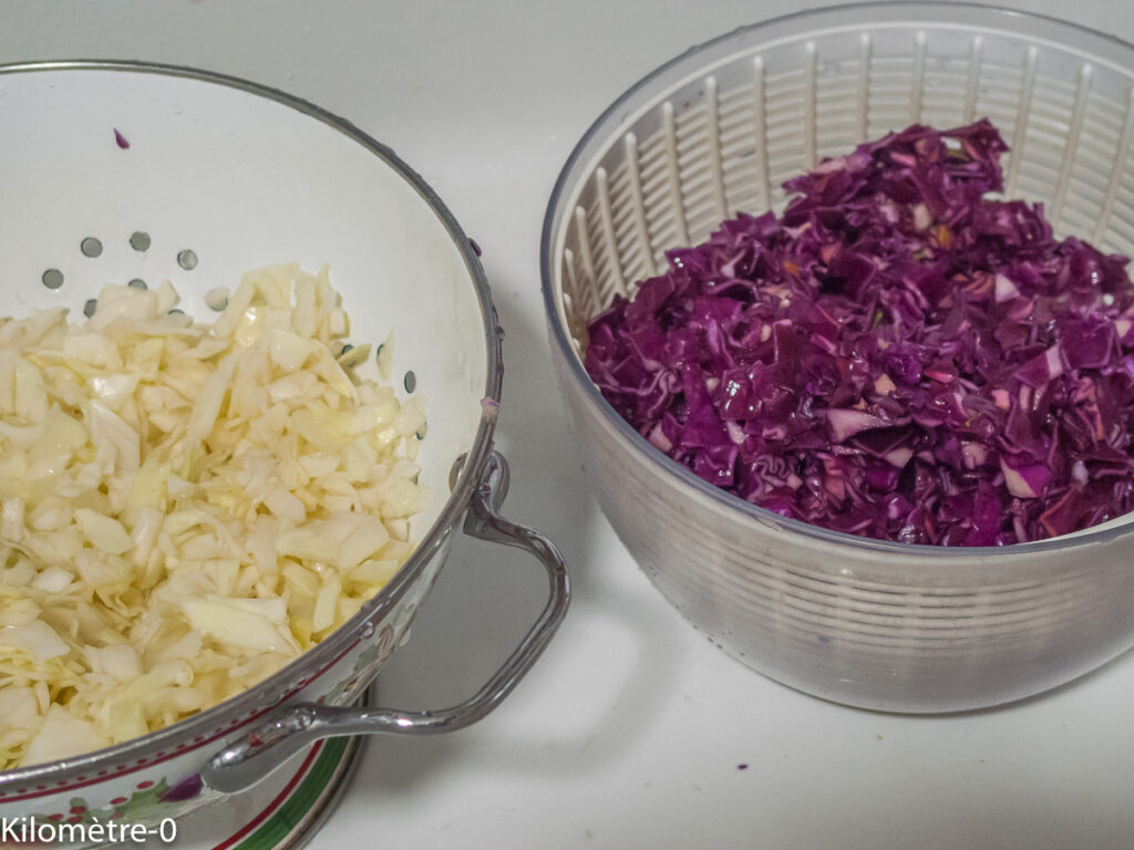 Rincez les choux au bout d’une heure et mettez-les, tour à tour, dans l’essoreuse pour qu’il n’ait plus d’eau.