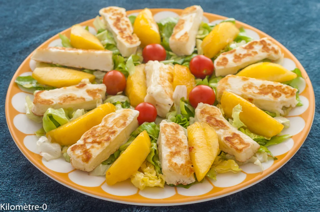 Salade de nectarine ou pêche à l’halloumi - Recette Kilomètre-0