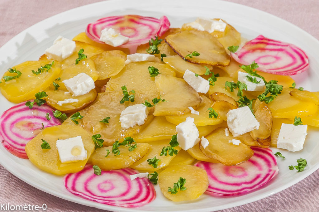 Une salade chaude parce que ce n’est plus tout à fait l’été mais qui garde son côté frais avec la fêta et la betterave crue !