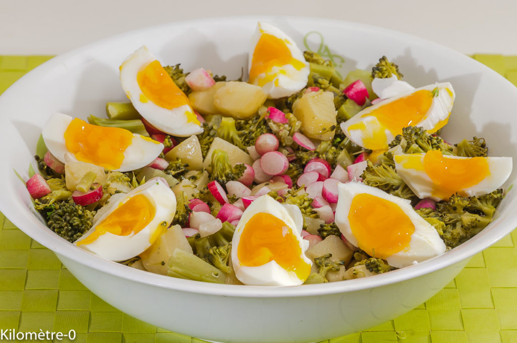 Salade de pommes de terre aux oeufs, brocolis et radis