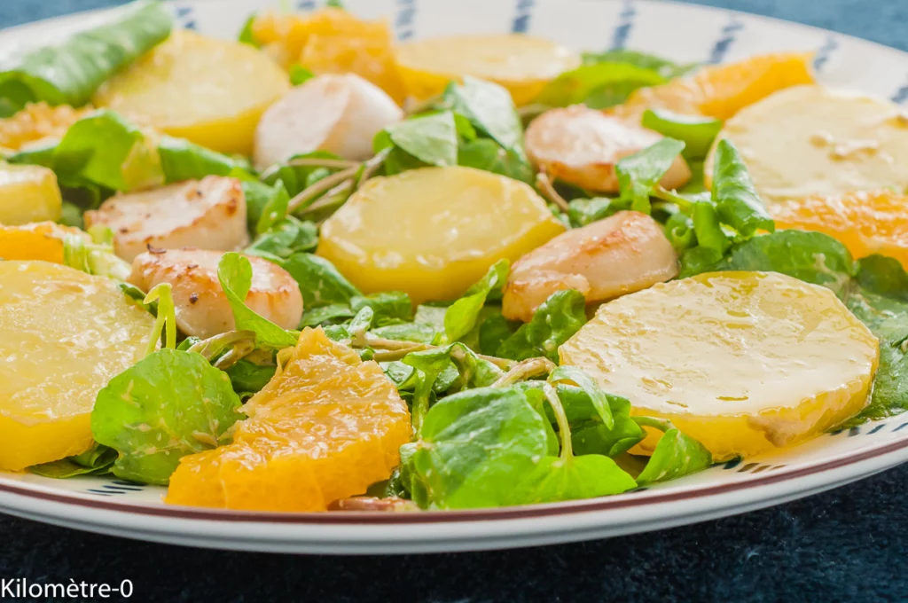 Salade de pommes de terre aux oranges, cresson et noix saint jacques