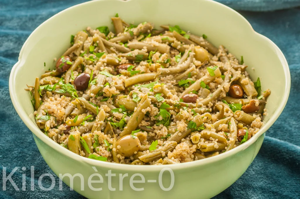 Une salade complète pour le déjeuner avec le quinoa qui comprend tous les acides aminés dont vous avez besoin. Si vous souhaitez néanmoins l’enrichir, vous pouvez ajouter un peu de poulet, d’escalope de porc ou des sardines. Ce sont quelques propositions mais vous aurez sans doute bien d’autres idées.