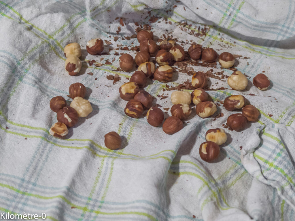 Grillez à sec les noisettes et enlevez le plus possible la peau en les frottant dans un torchon propre.