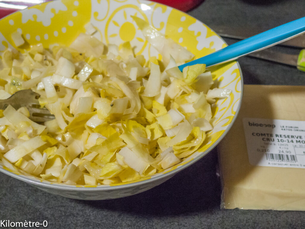 Photo de recette de salade, salade composée, salade légère, complète, salade verte,  endives, kiwis, comté, fromage, noisettes, facile, rapide, léger, bio, automne, hiver, Kilomètre-0, blog de cuisine réalisée à partir de produits de saison et issus de circuits courts