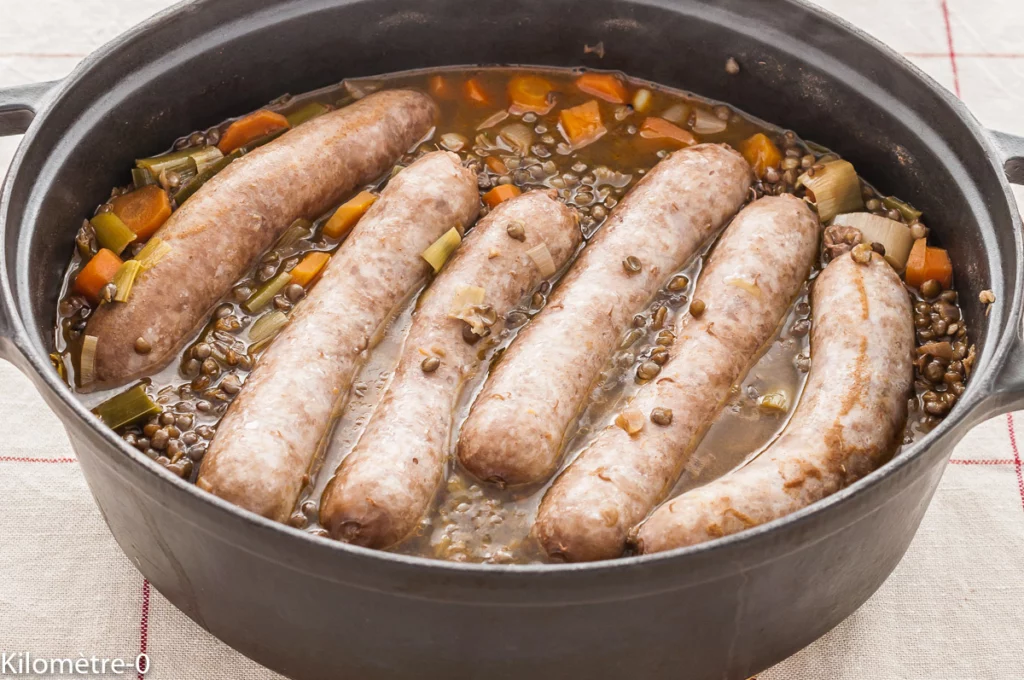 Potée de saucisses aux lentilles et légumes d’hiver