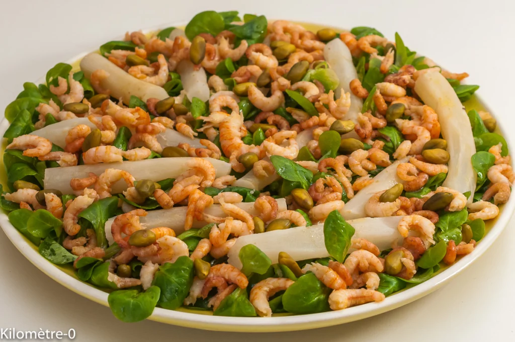 Scorsonères en salade aux crevettes et aux pistaches - Recette Kilomètre-0