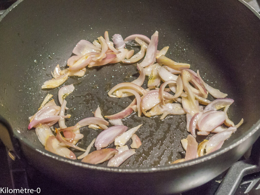 Epluchez les oignons, coupez-les en lamelles et faites-les revenir dans un peu d’huile.