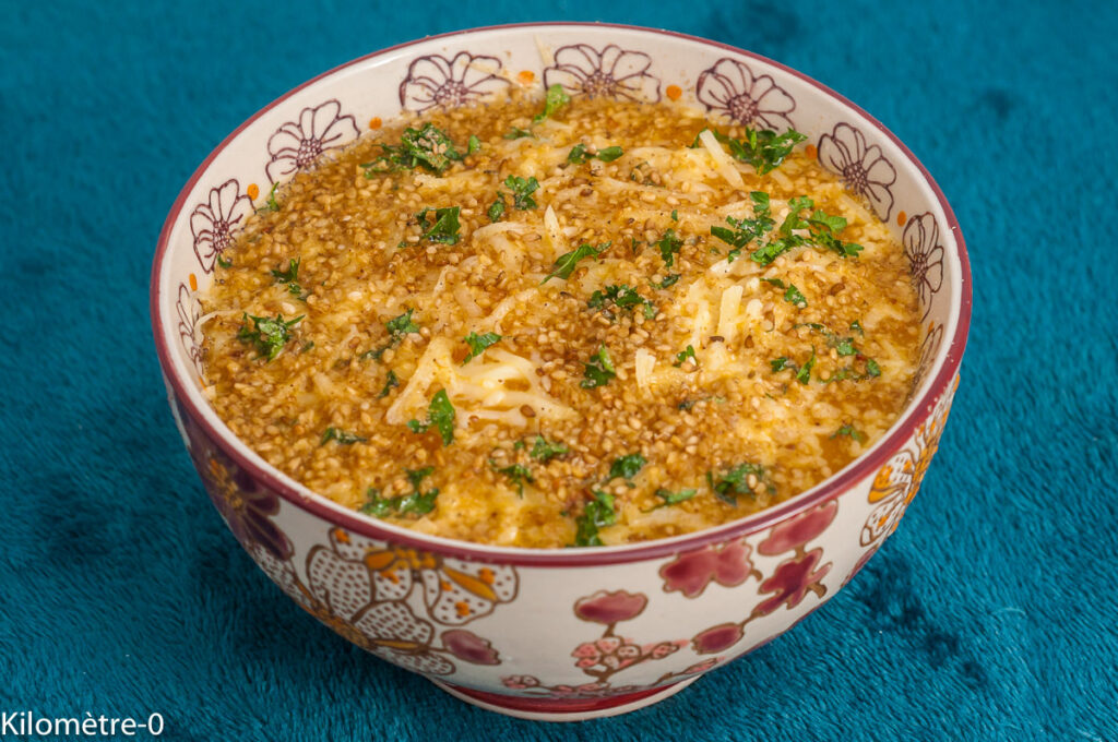 Vous pouvez en plus de l’emmental, ajouter du gomasio (sésame mélangé à 5% de sel). A la place de ce condiment, vous pouvez mettre d’autres graines.