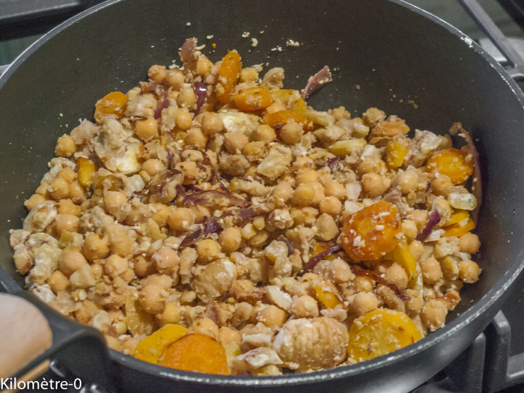 J’ai utilisé des pois chiches cuits. Cela correspond à 150 g de pois chiches secs.