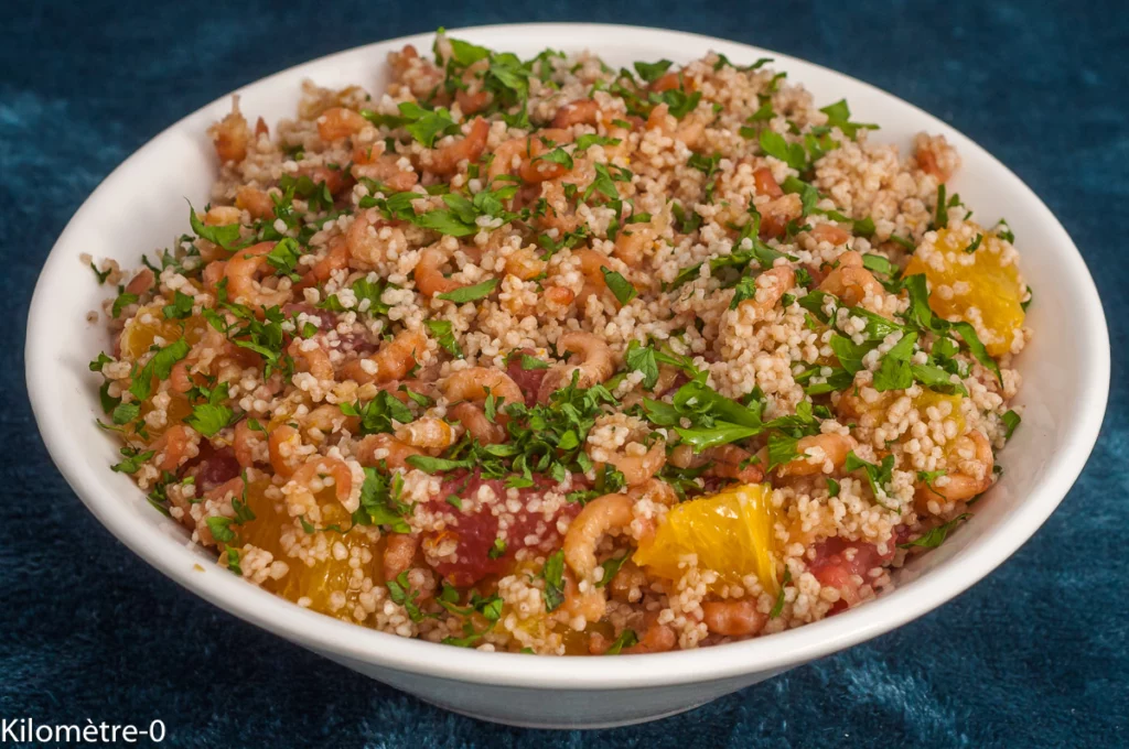 - Martine du blog « Kilomètre 0″ avec Taboulé aux agrumes et aux crevettes grises