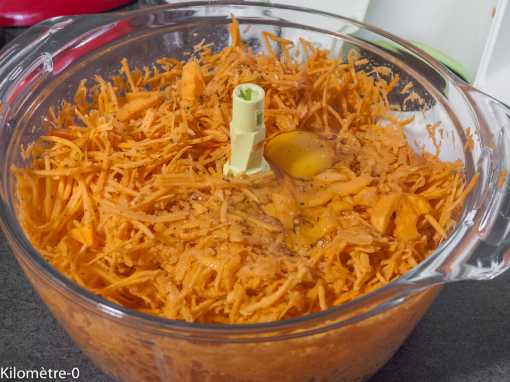 Épluchez les patates douces et râpez-les.