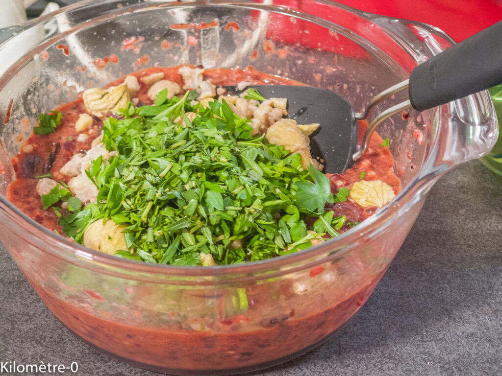 Ajoutez les fines herbes émincées et les châtaignes cuites. Technique de cuisson ici