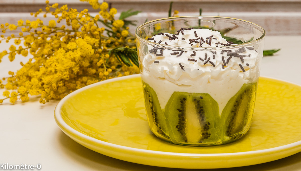 Photo de recette de verrine kiwi, fromage frais, facile, rapide, léger de Kilomètre-0, blog de cuisine réalisée à partir de produits locaux et issus de circuits courts
